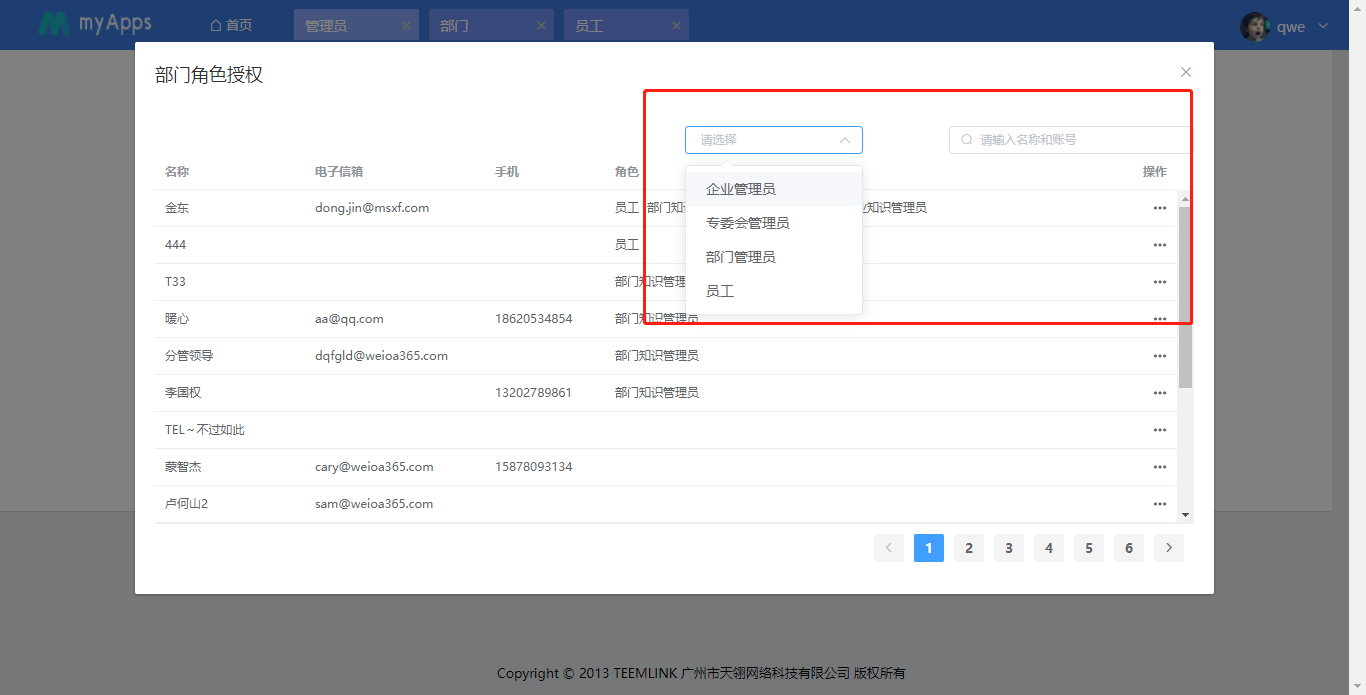 第一步:选择角色进行用户搜索,或者在输入框中输入名称账号进行搜索