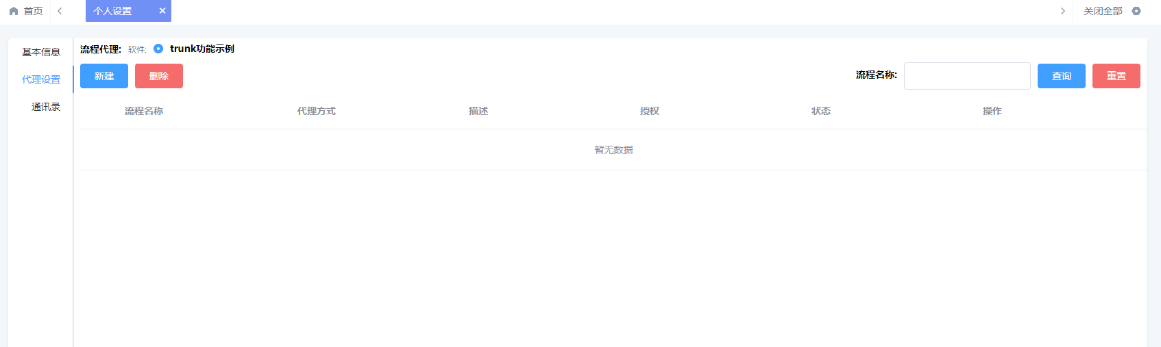 第四步:设置代理用户,主要是可以将创建的该用户的权限分给另一位用户,协助该用户审批流程等(该功能类似前台代理人设置功能)。
