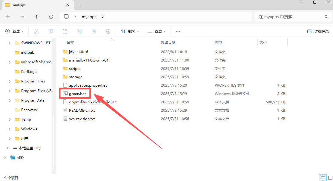 第二步:直接运行green.bat;
